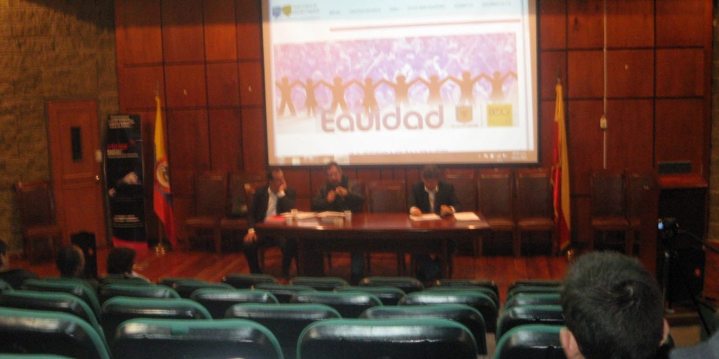 (En  la Foto:  Carlos  Medina   conferencista  y  funcionarios  del   gobierno  de  Bogotá)