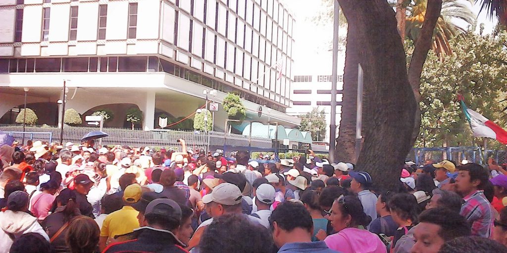 (En la foto: Maestros y maestrad Mexico SNTE y la corriente democrática CNTE en la toma de la embajada nortemaericana. Apoyando esta toma. Hicimos presencia, en el DF ciudad de México. Octubre 2 de 2013)