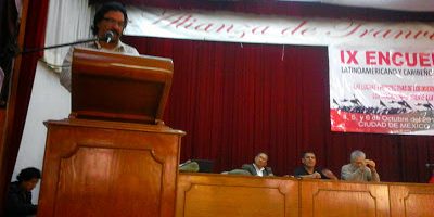(En la foto: Haciendo la presentación de la ponencia por parte del CNSCGM, compartiendo mesa directiva con los compañeros de R. Dominicana y Perú)