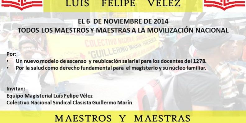 Me parece de sana competencia que los directivos de fecode tengan pensamientos diferentes en lo que se relaciona con negociaciones con el gobirno a trevés del ministerio de educacón. El que en FECODE, hallan dos postura diferntes referente a la negociación con el nuevo modelo de ascenso de los docentes 1278 y que ambas partes justificaron sus rencillas por medio de redes virtuales, permitio que en la junta ampliada del 21 de octubre se fijaran tareas interesantes como la de sostenerse en los tres puntos de ascenso y reubicación que fecode envio al ministerio, a demas de la concertción de la movilización el dia 6 de noviembre en defensa de los acuerdos pactados.