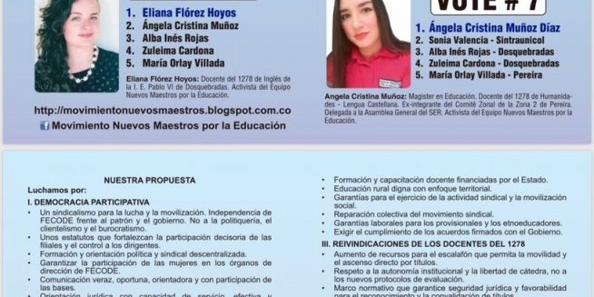 En Dpto de Risaralda para las elecciones CUT y FECODE los invitamos a votar por nuestra propuesta -Los Profes y Nuevos Maestros- Somos equipo, Somos Propuesta
