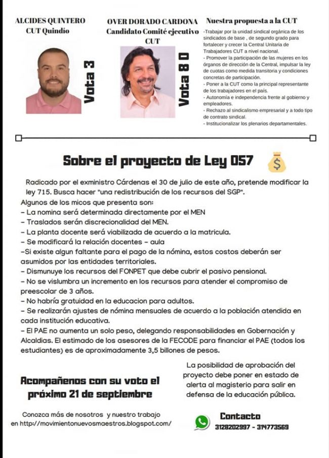 RESULTADOS ELECCIONES SINDICALES CUT -FECODE -2018- SOMOS EQUIPO, SOMOS PROPUESTA CON REPRESENTACIÓN EN LA DIRECCIÓN CUT Y FECODE -A PARTIR DEL 21 SEPTIEMBRE DE 2018-