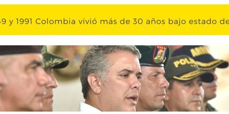 En medio de esta crisis sanitaria en los últimos días el gobierno de Iván Duque presentó un conjunto de decretos presidenciales, especialmente el 444 del 21 de marzo de 2020 y el 457 del 22 de marzo de 2020, para afrontar la pandemia del COVID-19. Estas medidas por una parte asumen la pandemia como un asunto de orden público que requiere del control militar de la población, principalmente de la más empobrecida y desesperada que exige garantías para la alimentación, vivienda y salud; y por otra parte tratan la pandemia como un asunto financiero que requiere del respaldo del Estado a la banca privada y los grandes empresarios e