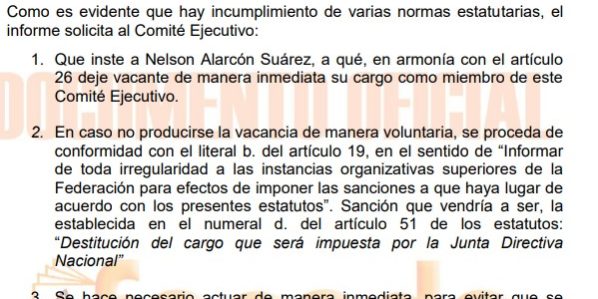 - Como es evidente que hay incumplimiento de varias normas estatutarias, el informe solicita al Comité Ejecutivo: