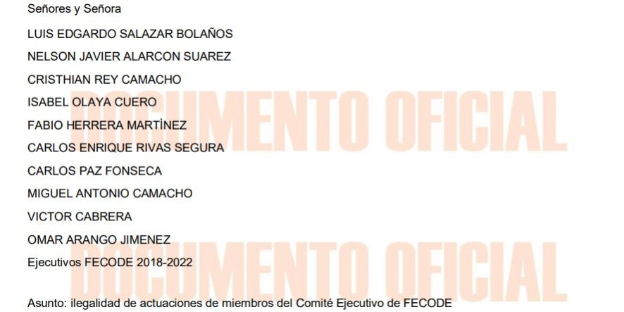 Ante la profunda crisis del actual ejecutivo de FECODE, producto de sus actuaciones ilegales que ustedes han asumido, estamos notificando a través de este oficio a la Junta Directiva Nacional, a las filiales de la