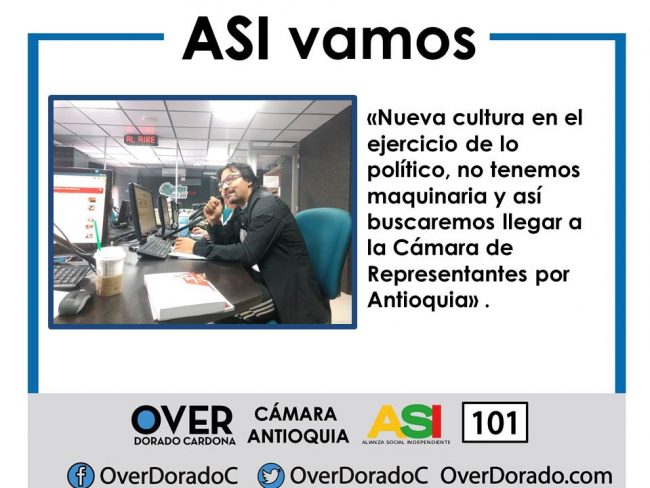El candidato a la Cámara de Representantes por el partido de la ASI, Over Dorado Cardona, en el programa radial Acción Pública de Ondas de la Montaña, corroboró a la audiencia que sus ideales, propuestas políticas y sociales, hacen parte de un compendio de arduo trabajo y de apoyo de diferentes personas, lideres, organizaciones que…
