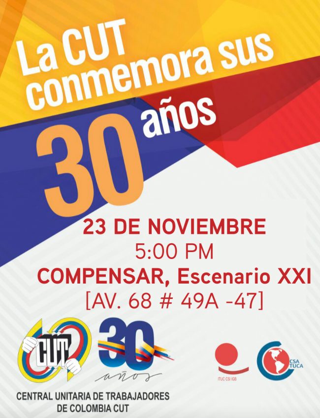 CENTRAL UNITARIA DE TRABAJADORES -CUT COLOMBIA-, CONMEMORACIÓN DE SUS 30 AÑOS, Noviembre-23-2016-. Bogota